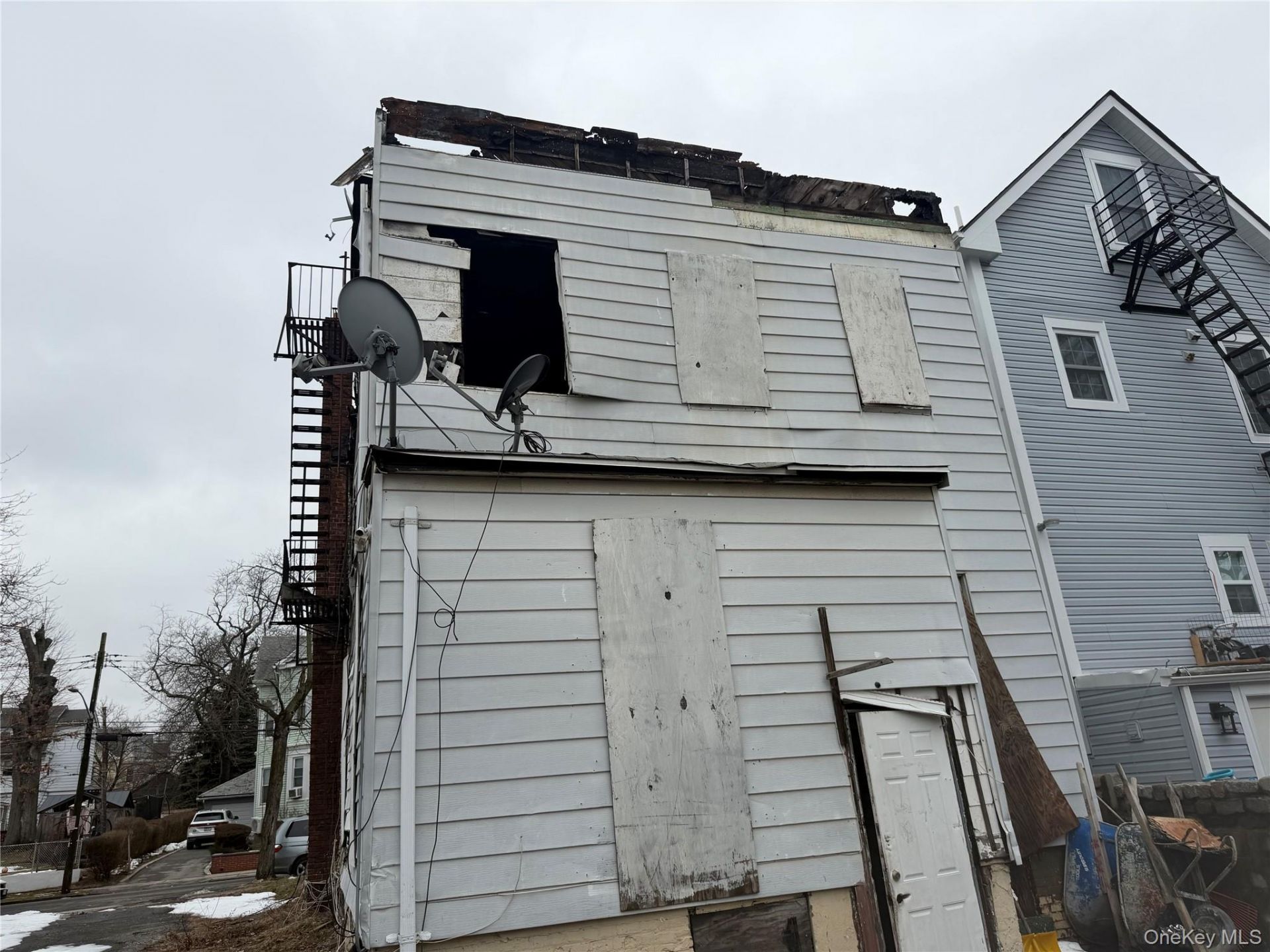 This detached, three-family home sits on an oversized 0.11-acre lot (4,792 sq. ft.), beautifully positioned on a quiet block close to shopping centers, schools, and public transportation. Although the property is detached and has suffered fire damage, with interior and exterior repairs needed, it boasts three gas meters and four electric meters, offering strong multi-unit potential once fully renovated.